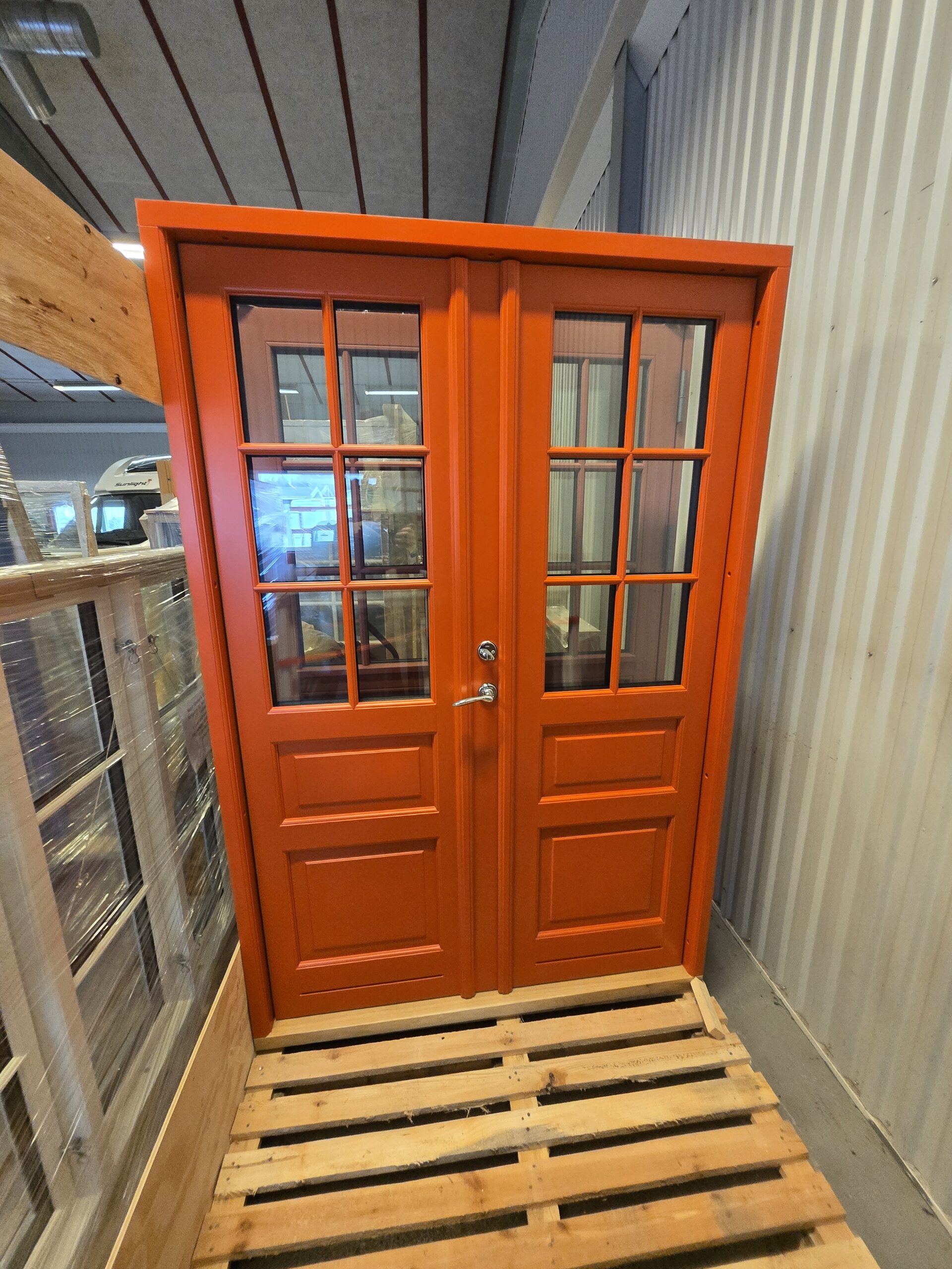 Parytterdörr Brandgul 14 21 3 glas med spröjs